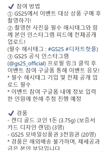 GS25에서는 3월 31일까지 대상 제품을 구매하고 인스타 참여시 골드코인을 주는 행사가 있습니다.